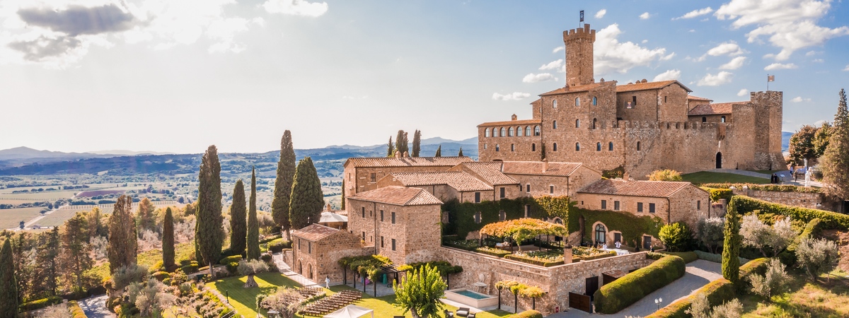 Lais e Sandro se casaram no Castelo de Banfi na Toscana